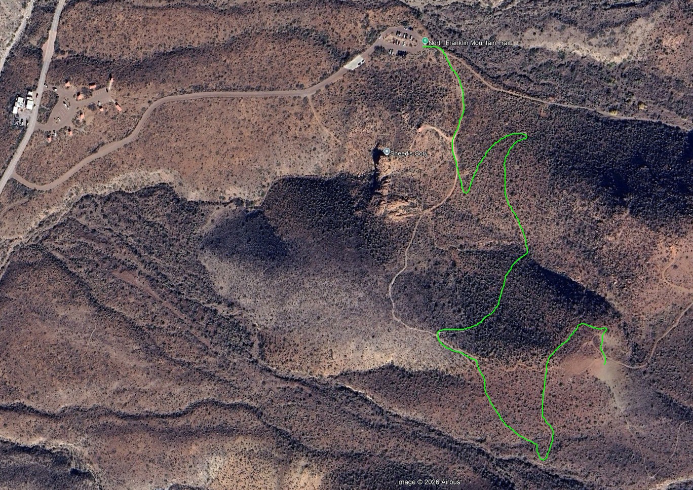 Enter the Tom Mays Unit of Franklin Mountains State Park. The Park entrance is on the west side and right at the base of the Franklin Mountains off state route #375 (Transmountain Highway). Please call the Park at 915-444-9100 for current hours of operation and details on the fees. A map of Tom Mays is here. Locate the parking area (in the east part of the Park) that is for Agave Loop and the trails that go to Mundy's Gap and N. Mt. Franklin. It is a 10 to 45 minute hike to launch, depending on your condition and the weight of your kit. Google Earth Map of Agave Loop Trail.